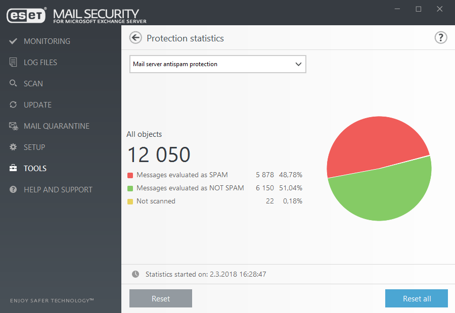 Công cụ giành giải thưởng độc quyền của ESET ngăn chặn thư rác. Bao gồm xác nhận SPF và DKIM, bảo vệ tán xạ ngược và bảo vệ SMTP.