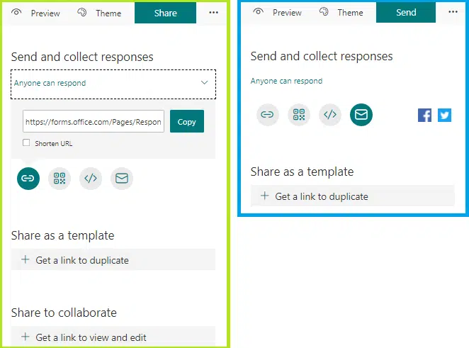 Chia sẻ dạng thư giúp tạo ra một bảng câu hỏi trong phần nội dung của email và gửi đến danh sách người nhận xác định.